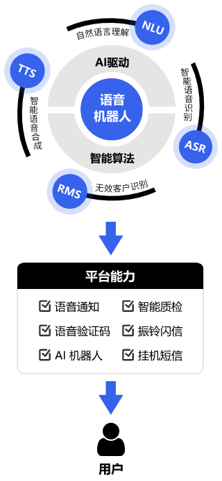 語音通知、語音驗(yàn)證碼、機(jī)器人外呼、智能質(zhì)檢、隱私小號(hào)等