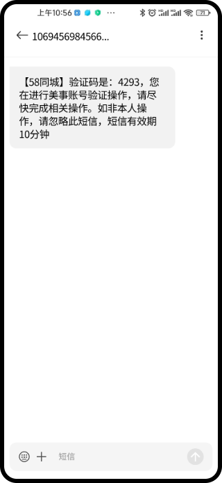 在招聘行業(yè)中,58同城通過短信驗(yàn)證提升了用戶賬戶的安全性和操作便捷性。此次【58同城】發(fā)送的驗(yàn)證碼4293,用于美事賬號(hào)的驗(yàn)證操作,確保用戶的個(gè)人信息和操作安全。通過精準(zhǔn)的短信通知,58同城不僅提高了用戶體驗(yàn),還增強(qiáng)了賬戶保護(hù)措施,防止未經(jīng)授權(quán)的操作發(fā)生,保障了用戶的權(quán)益。這種即時(shí)驗(yàn)證服務(wù)有效提升了平臺(tái)的信任度和用戶滿意度。